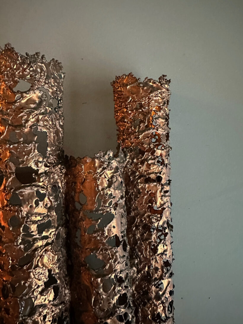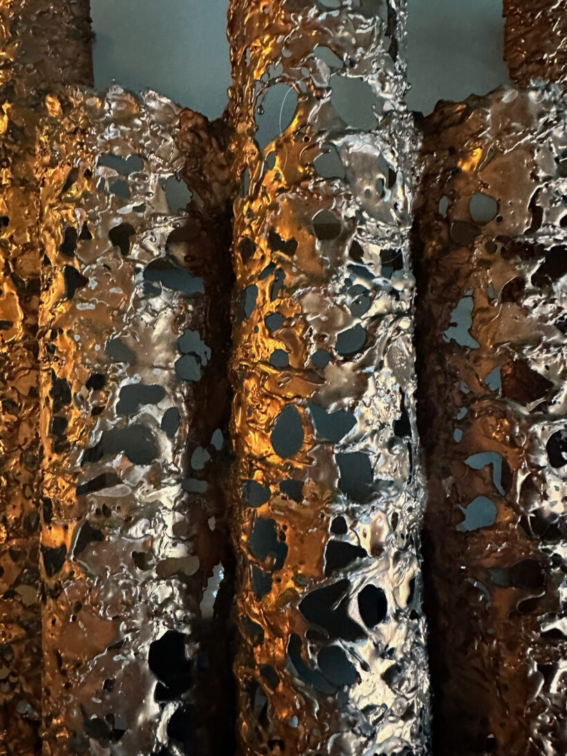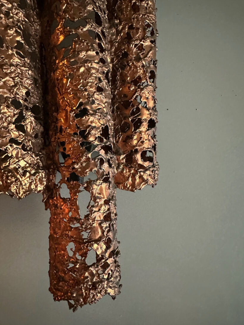 Five (5) golden coloured metal openwork tubes which send the light wonderful on the wall.